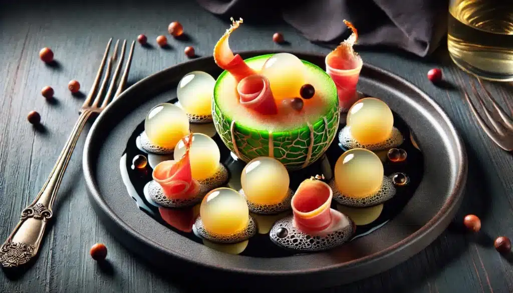 - Esferificação: Utilizada na criação das Esferas de Melão com Presunto, esta técnica transforma líquidos em esferas gelatinosas com interior líquido.